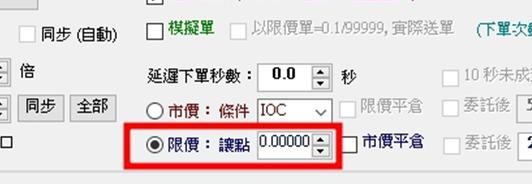 B. 如果價格輸入0 . 會市價下出. - 使用策略裡…如果設定限價(有讓點).. 那麼